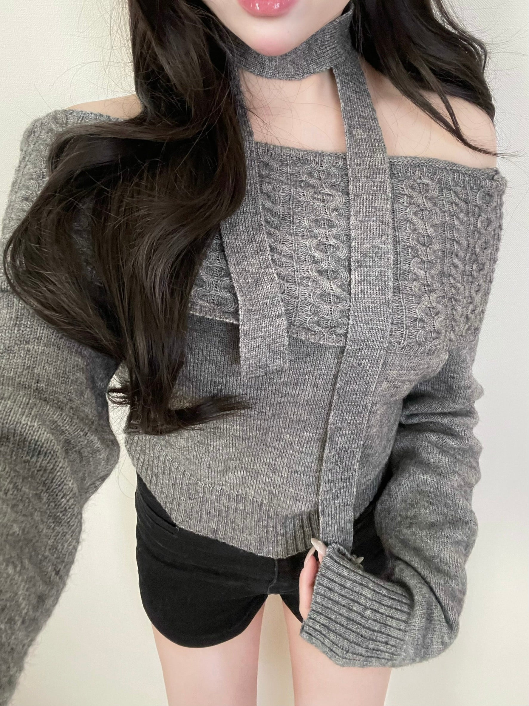 オフショル編み目マフラーニット【IN2511002】
